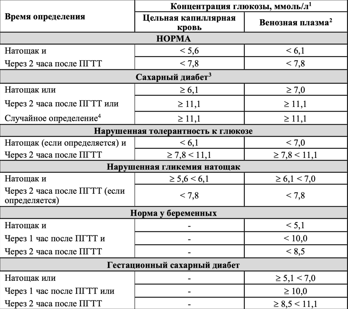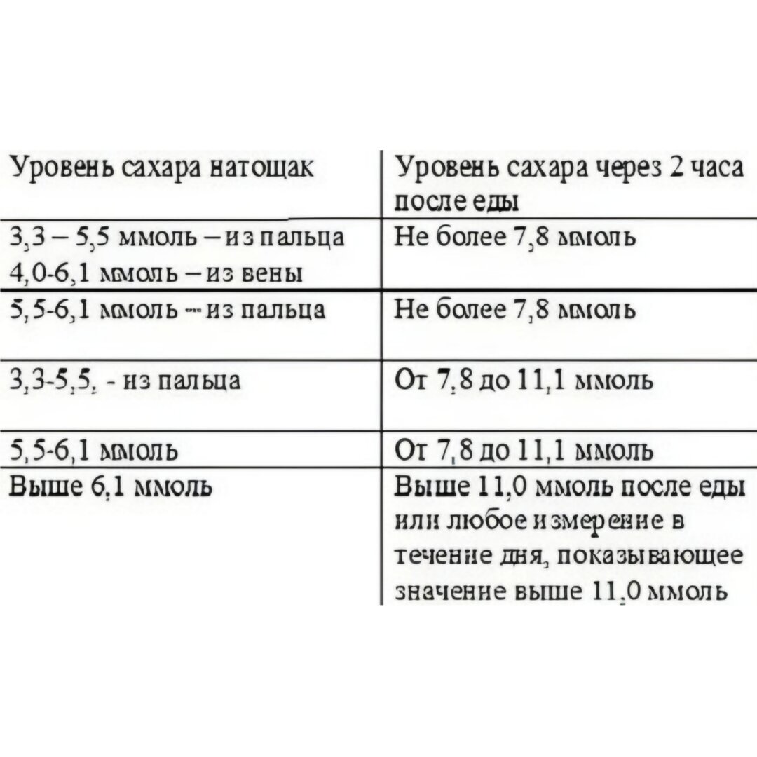 Показание глюкометра таблица